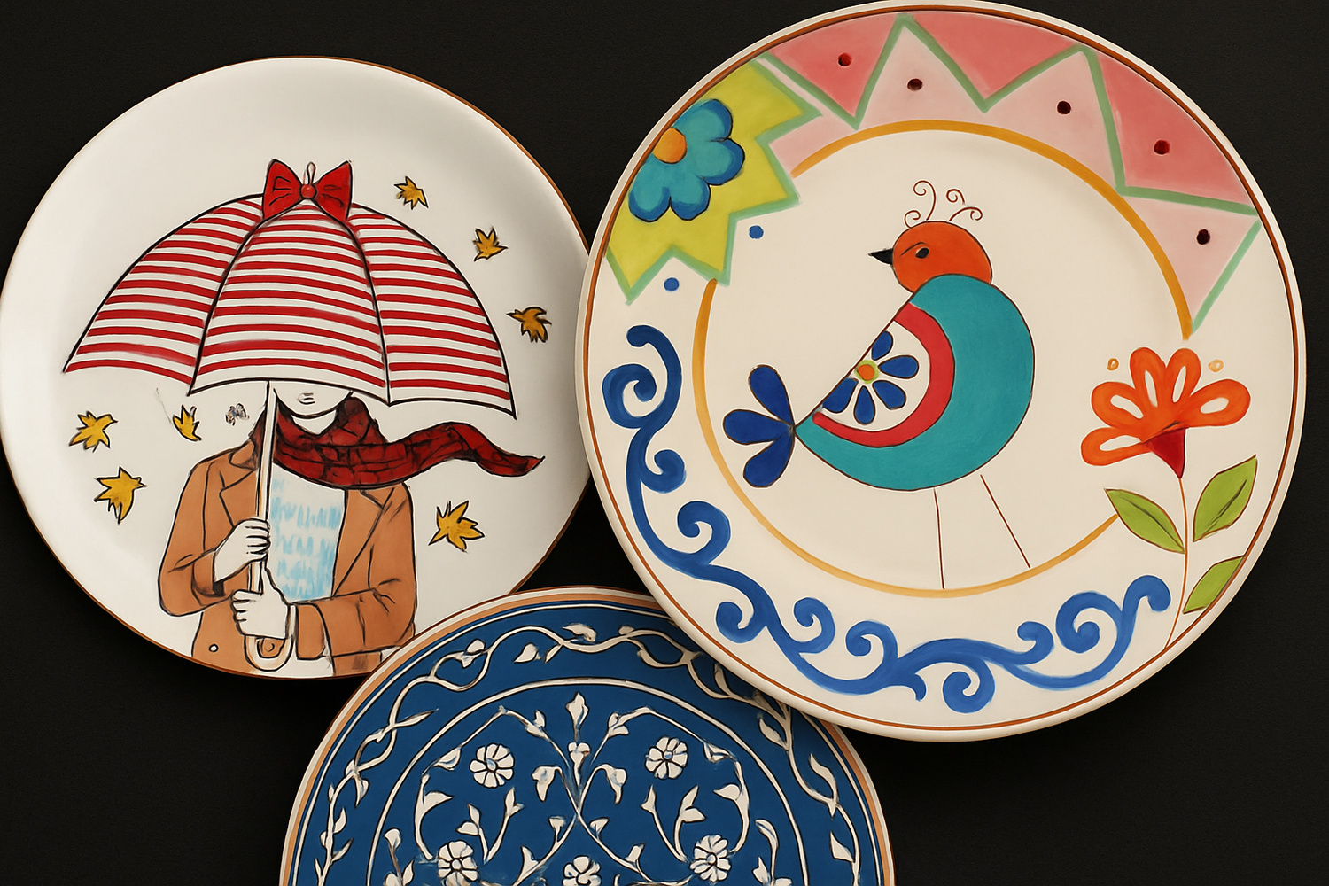 El yapımı çini tabaklar, dekoratif seramikler ve kişiye özel sanat eserleri.