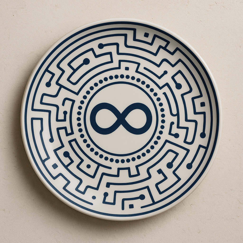 Merkezindeki sonsuzluk sembolü, insan aklının yaratıcılığının bitmeyen döngüsünü temsil eder.